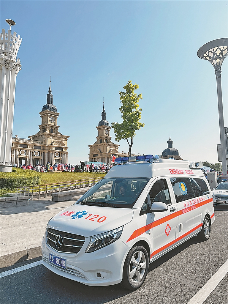 25日7时,哈尔滨市急救中心配备的120救护车驶入开幕仪式现场,身着醒目服装的救护人员早早就位。随着发令枪响,救护车在音乐公园出发,沿途到网红桥,最后跟随到达终点,提供指引帮助和服务。