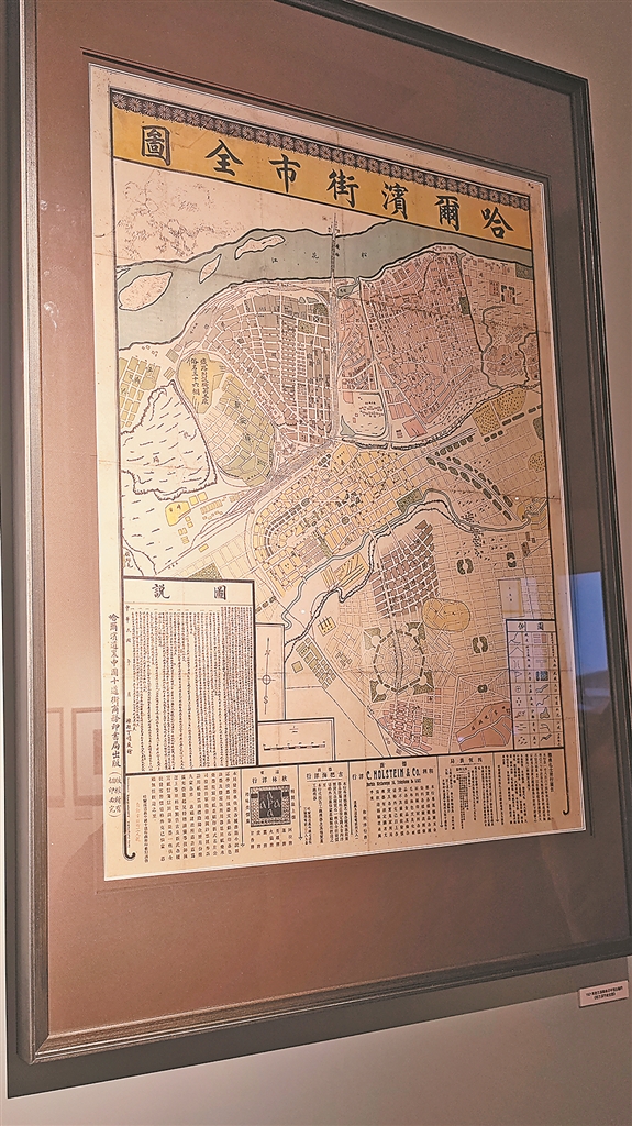 沿着两侧琳琅满目的展品陈列进入主展厅。悠扬的小提琴弦乐从俄罗斯演奏者的指尖缓缓流淌,伴随着琴乐,观众在极具艺术气息和浪漫主义色彩的氛围中欣赏展品。这里展出了哈尔滨最早的商业广告久滨布庄广告、徐志摩亲笔签名的第一辑《诗刊》等500余件历史文物原件和百余张珍贵照片。展现了1900年至1940年矗立在中央大街两侧、极具浓郁欧洲建筑风格的各色建筑,依托建筑开办的金融、商业、文化等场所及其相关文物,将中央大街的前世今生娓娓道来。