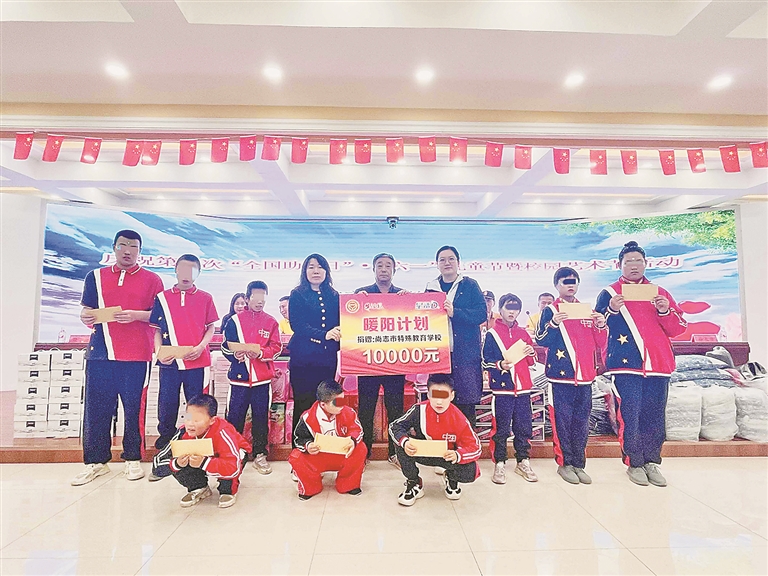 活动现场,同学们在老师的带领下准备了16个节目进行表演。《说唱中国红》《小花朵》《彩色翅膀》《上春山》《听我说谢谢你》等精彩的节目逐一展现,表达了学生们对爱心人士的感谢。小伟(化名)是此次受帮扶的学生之一,他患有精神残疾,全家靠低保为生。“他家中母亲、父亲皆为残疾人,还有一位71岁的爷爷要赡养。家里还有刚刚出生不足1岁的弟弟,正在哺乳期,开销较大。家中没有土地,靠租地种维持家庭开销。”尚志市特殊学校的副校长张丽杰告诉记者,此次受助的学生都是家庭十分困难的,这次能得到爱心人士的帮扶,对他们以及他们的家庭来说都是雪中送炭。
