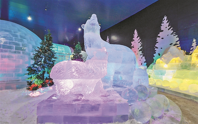 与冬季的室外冰雪大世界相比,馆内冰建景观上增加了许多彩冰的装饰,造型更加精美细腻。彩冰雕刻的水果、甜甜圈、冰淇淋、小蛋糕等景观十分逼真,仿佛散发着香气。目前,梦幻冰雪馆内景观灯光调试、景观氛围美化等收尾工作正在全速推进中,确保6月下旬如期迎客,届时欢迎全国乃至世界各地的游客随时来感受真冰真雪的独特魅力。