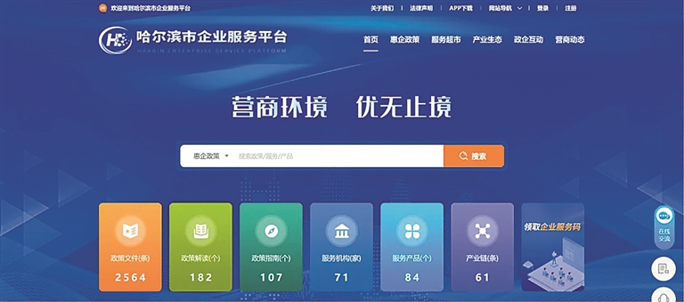 生活报讯 (记者张立) 记者25日获悉,哈市营商环境建设监督局统筹打造的“哈尔滨企业服务平台”微信公众号已正式上线,市民及企业在微信上搜索即可关注。