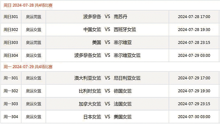7月28日19:30 西班牙女篮vs中国女篮
