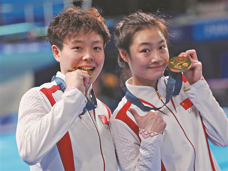 综合中国新闻网、央视新闻、成都商报报道 7月27日,巴黎奥运会跳水女子双人3米板比赛中,中国跳水队的陈艺文和昌雅妮勇夺金牌。
