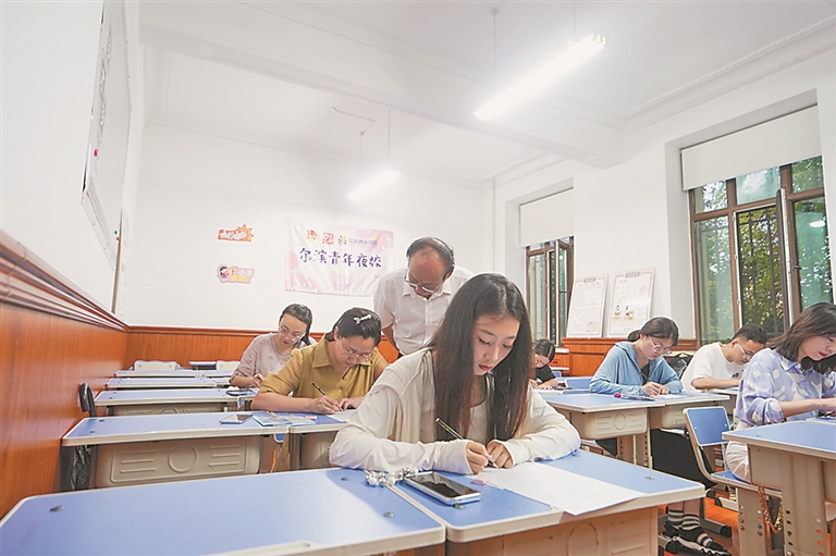 7月24日,哈尔滨团市委“尔滨青年夜校”在哈尔滨青年宫正式开课,开设了绘画、硬笔书法、形体、软笔书法、美妆、手机摄影、舞蹈等七门青年人喜闻乐见的课程……