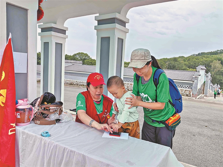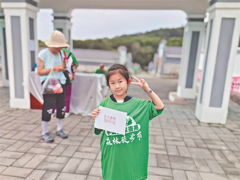 今年的森林徒步节,新增加了三项集体活动。其中,在景区指定地点的“打卡”盖章活动,吸引了很多读者参与。
