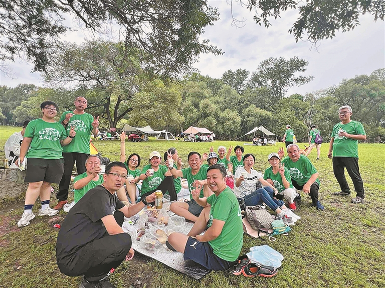 有人选择“先吃为敬”,有人选择先“巡山”。“我们用了两个多小时爬完全程,平山真的很适合徒步,一路上都是缓坡,不累,风景也漂亮,还有各种打卡地。”山脚下,正在喝着冰镇格瓦斯的程先生和伙伴们感慨道。“去年生活报在这儿举办的森林登山节我们就参加了,体验感非常好。这次我们来了10多个人,年纪最大的60多岁,年轻的30多岁,在森林里走一走,不仅能欣赏大自然的美景,还能呼吸新鲜空气、跟小动物们互动,这些都是城市徒步比不了的。下山还能喝到冰镇格瓦斯,真爽!”因为难掩激动,合影时大家还情不自禁地一遍遍大喊着:“生活报加油!提前祝《生活报》40岁生日快乐!”