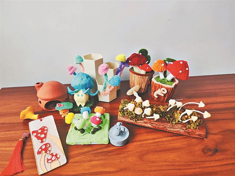 学生们通过观察,临摹着不同种类的蘑菇,在多彩靓丽的手绘作品中,蘑菇世界更显生动;学生们用手工素材将蘑菇世界进行完美还原,有彩灯、有软胶、有太空泥,大家通过细心雕琢,将一件件蘑菇主题作品展现得栩栩如生;同学们根据蘑菇结构创新制造的笔筒也成功获得外观设计专利证书;还有很多学生将蘑菇与自己的大创选题结合,完成进一步研究,截至目前,共有20多名学生完成了大创项目。