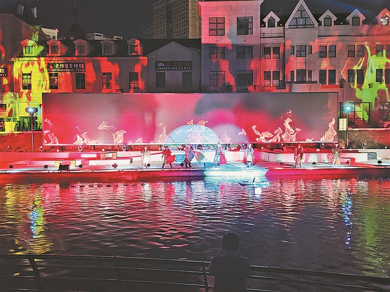 10余米高的水幕映出舞台倒影,近万人汇聚一处鼓掌喝彩。16日19时30分,随着鼓声的响起,哈尔滨世界欢乐城全息实景舞台剧《印象·哈尔滨》正式上线,整部舞台剧以哈尔滨历史文化为主线,让观众感受哈尔滨的独特魅力与深厚底蕴。