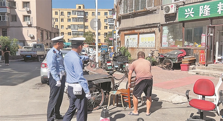 生活报讯 (记者王伟健 李岚 文/摄)近日,哈尔滨多位市民向生活报记者反映,南岗区大成街附近,多处沿街商户在自家门前的公共停车位前安装地锁,设挡车桩、水桶、石墩等占据车位。9月2日上午,记者联合南岗交警大队警力一起赶往现场查看处理,并进行了取缔和整治。