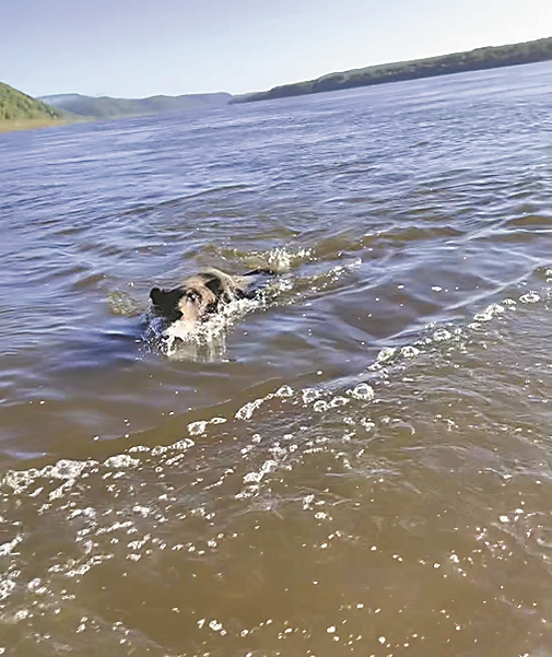 记者从伊春边境管理支队了解到,2日7时许,保兴镇渔民王某在黑龙江上打渔时,看到一只黑熊在对岸俄罗斯下水,起初并未过多关注,因为往年偶尔也会看到俄方黑熊到江里“休闲游”。但没想到,这只黑熊目标明确、十分执着,以娴熟的“狗刨式”泳姿,直奔中国游来,“一鼓作气”横渡黑龙江,在嘉荫县保兴镇辖区的黑龙江“562航标”附近上岸,钻进深山之中。从体型上看,这是一只成年黑熊。于是,王某迅速将这一情况报告给保兴边境派出所。