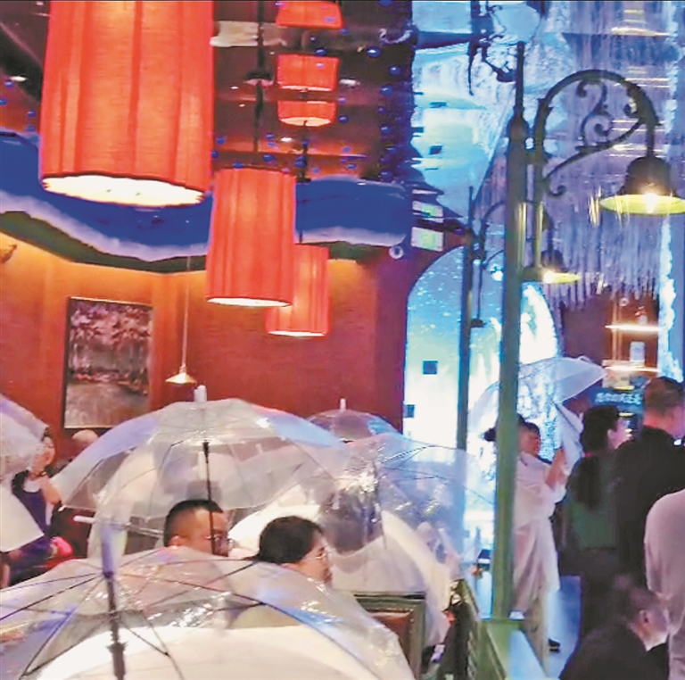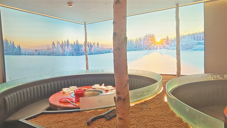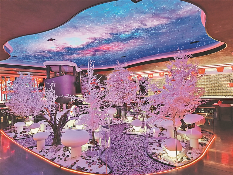 “没想到把铁锅炖也能做得这么有情调!”日前,中央大街附近的一家铁锅炖门店一亮相,就吸引了大批的打卡者。餐厅内布置了白桦林、雾凇、落雪的蘑菇,再配上闪烁的星空顶,客人就像坐在森林里吃铁锅炖,格外享受。