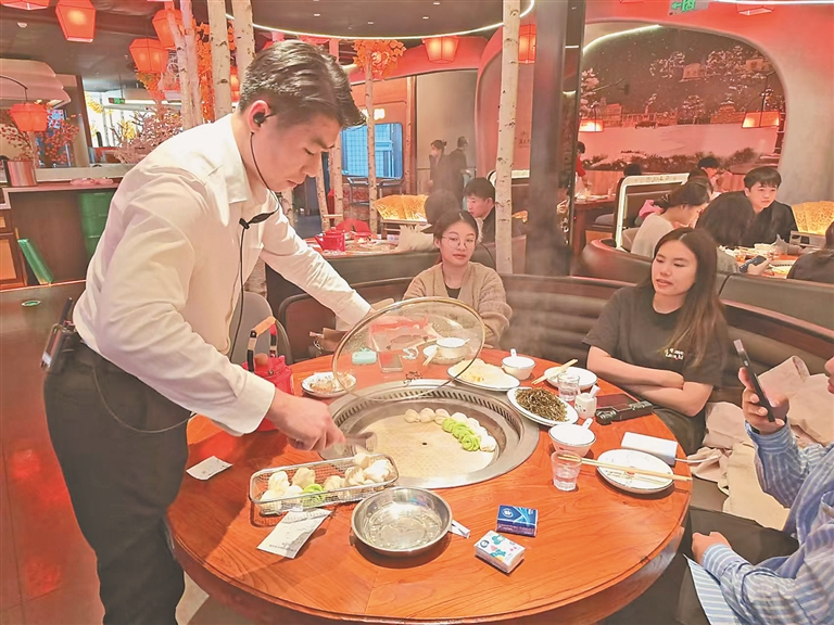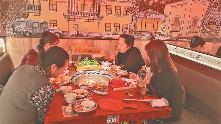 “以往铁锅炖在大家的印象中,吃着温暖但档次不高,适合家里人聚餐,不适合高端宴请。但变身后铁锅炖更为时尚大气了,现在一些朋友的宴请、贵宾的接待、高端宴请也都选择来吃铁锅炖,从数据上看,时尚年轻的客流增多了。”哈市一家铁锅炖连锁品牌店的李经理表示。