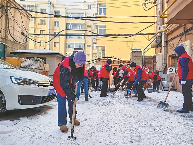 生活报讯 (记者于海霞) 记者了解到,哈市香坊区多部门日前发出清冰除雪行动倡议书,全区53个区直机关单位的千余名党员干部放弃周末假日休息,下沉20个街道办,联合城管局专业队伍、街道社区工作人员、志愿者服务队,对辖区背街背巷及768个自管庭院积雪进行精细化清理。各街道办事处组织志愿者7500余人次参与清冰雪活动,发动临街商家业户和单位7600余家,清理积雪8900立方米。