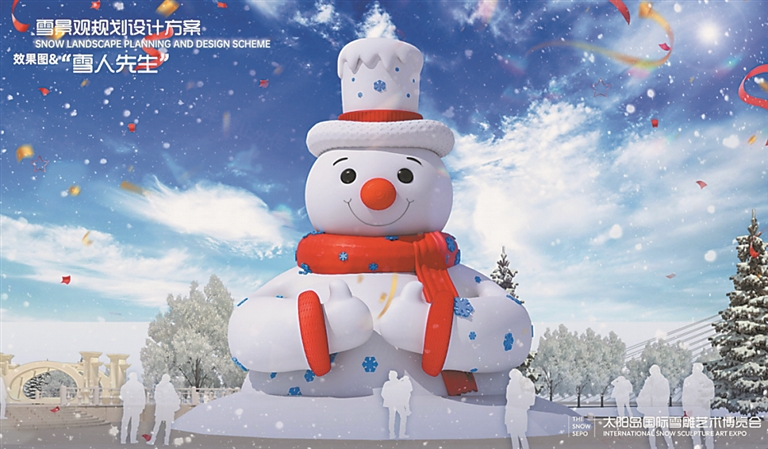 据太阳岛风景区工作人员介绍,《雪人先生》由哈尔滨冰雪艺术大师张宁阁老师设计,雪人头顶高筒礼帽,双手巧妙地捧起雪花,并伸出大拇指,这一形象生动地寓意哈尔滨人的豪爽与热情,也预示着太阳岛雪博会将以最精湛的雪雕景观艺术,向远方的游客奉献上一份独特的欢迎礼,同时带给人们无尽的幽默与快乐。