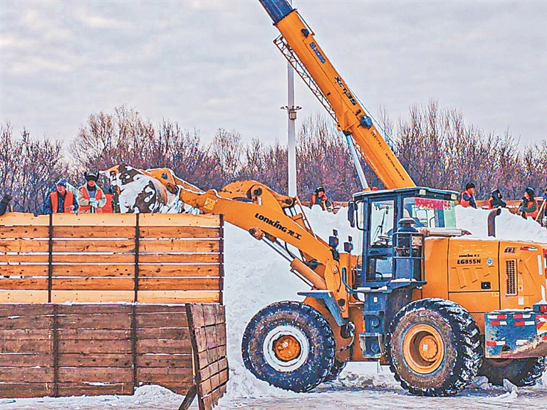 紧张的堆雪作业|图片均由哈尔滨太阳岛风景区提供