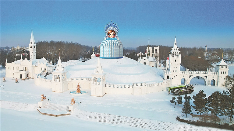 冬天的伏尔加庄园是一个充满异国情调和浪漫气息的旅游胜地。这里不仅能玩转经典的城堡雪圈,欣赏浪漫的俄式建筑,这个冰雪季,景区还将“上新”一个占地5万平方米的“白色城堡群”——雪姑娘童话城堡。它由多座城堡围合而成,城堡正中央山顶上的克拉希薇宫,是一个40米高的套娃造型建筑。