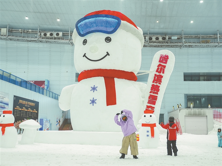 据了解,这个冰雪季,为满足游客多元化体验需求,哈尔滨热雪奇迹将在2025年1月至3月打造“热雪小金豆 东北民俗过新年”活动:雪场内营造浓浓“东北风”,让“东北村落”场景映入眼帘;雪具大厅内有“东北集市”,带大家品尝铁锅炖、杀猪菜、冰糖葫芦等东北美食,参与写春联、剪窗花等游戏,感受东北文化;雪场的娱雪区域,还有“老村长”热情上岗,带游客雪堆挖冻梨、雪地抓大鹅,是不是想想都开心?让游客倍感便利的是,这样的欢乐滑雪潮玩地,就在哈尔滨市区内,公交、地铁无缝衔接。如果想与“大雪人”合影,这里也能满足您:大雪人“热雪哈宝”,憨态可掬,头戴小红帽,围着红围巾,手持滑雪板,身边还伴着两个小雪人,自8月揭幕以来,吸引了无数游客打卡。