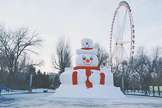 记者了解到,太阳岛雪博会太阳石广场的“雪人先生”高达20米,用雪量达4000立方米,而文化公园内“雪人先生2.0”高12米,长宽各11米,总用雪量2000立方米,占地面积121平方米,同太阳岛雪博会雪人先生外观一致,但是由于场地和地理位置限制,实际用雪量是太阳岛“雪人先生”的一半,整体缩小了一半。“雪人先生2.0”头顶高筒礼帽,双手巧妙地捧起雪花并伸出大拇指,展现了哈尔滨人的豪爽与热情,与身后的蓝天、白云、摩天轮相映成趣,别有一番浓郁的童话色彩。让来到哈尔滨的游客在太阳岛雪博会以外的地方也能近距离赏冰乐雪,打卡拍照,留住这个冬天的美丽。