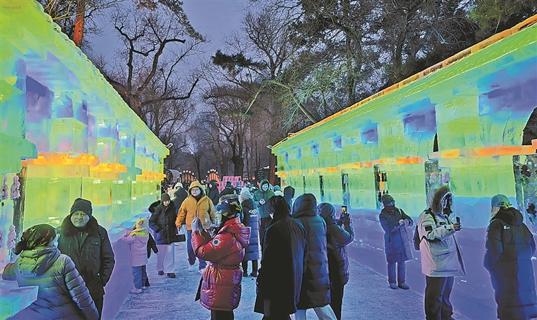生活报讯 (记者王伟健 李岚 记者丁毅 摄) 12月30日15时,哈尔滨市第51届冰灯艺术游园会正式免费向公众开放。大量市民、游客进入园内游览,感受冰灯的魅力。