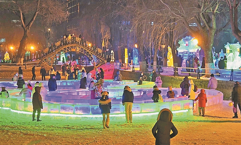 作为中国冰灯艺术发源地,本届冰灯艺术游园会从1963年一路走来,不仅承载着几代人的冬日记忆,如今更成为了国内最大的公益性冰雪艺术园区。今年的冰灯艺术游园会精心规划六大区域,每一处都藏着不一样的冰雪魔法。在亚冬展示区打造了以亚冬会主题口号“冰雪同梦 亚洲同心”为背景的“同梦同心”“亚冬健儿”“相约亚冬”“激情亚冬”等冰雕作品;在历史回顾区,游客们可在此感受经典重现,“冰花长廊”“万象更新”“冰灯笼”等再现冰灯游园会经典作品,并赋予新的生命力;在冰艺竞技区内,自12月中旬至2025年1月末期间将赛事不断。全国专业冰雕赛、大学生冰雕赛、青年专业赛等六大顶级赛事轮番上演。大学生们创意爆棚,用冰诠释青春梦想,还有青少年也来一展身手,上百支队伍、近千名参赛者,让每一块冰都化身艺术品;在冰上娱乐区规划设计了“心相连迷宫”“冰场”“冰竖琴”等趣味冰雕作品,既可欣赏冰雕作品,又可畅玩冰雪娱乐项目。