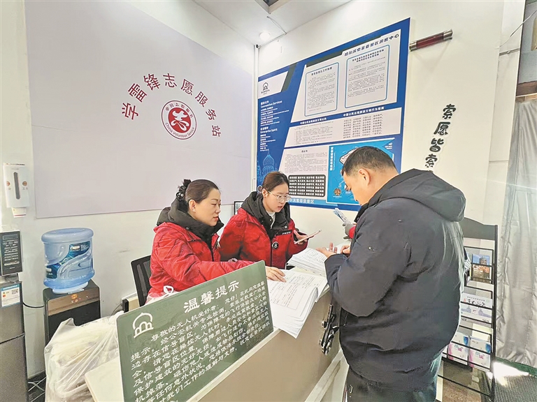提供双语服务 看护“寄存”的孩子 季雪丽在志愿者服务窗口答疑解惑
