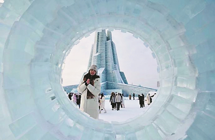 哈尔滨冰雪大世界设计研发部部长丛配玉介绍,这一届,恰逢2025年亚冬会在哈尔滨举行,冰雪大世界把园区面积扩大到了100万平方米。在这里,仔细观看和寻找,你会发现每一个冰建、每一处景观都蕴含着无限魅力和精彩细节。不仅巍峨的主塔、敞开怀抱迎接八方客的主形象大门、以天鹅引颈高歌为灵感设计的梦想大舞台等大型景观充满了设计和巧思,冰封的玫瑰墙、能“凹造型”的雪墙、圆南方游客下雪梦的“雪门”、与历史文化神奇“牵手”的“冰”马俑等“小景儿”,也都在用“冰雪语言”讲述着哈尔滨的冬日浪漫。