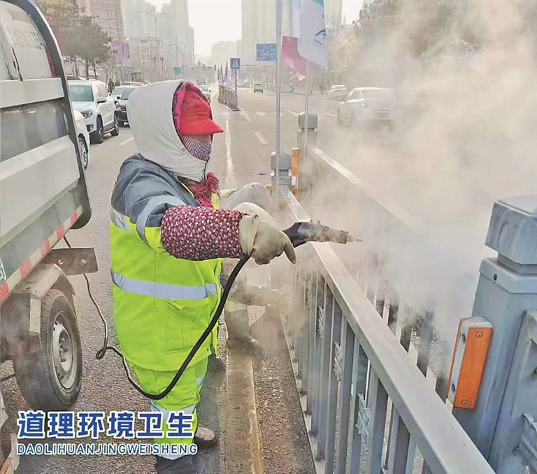 据了解,改装后的蒸汽清洗机采取物理加压的方式,将100℃左右的沸水转化为喷雾,可迅速清除隔离护栏表面的灰尘,再由环卫工人跟进擦拭。目前,每台蒸汽清洗机平均每小时可清洗隔离护栏200米,且清洗后的护栏表面更加干净,切实减轻了人工作业压力。