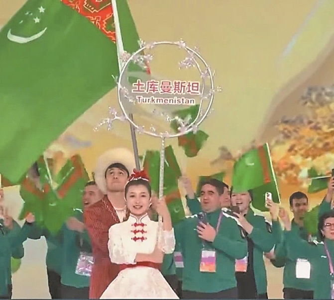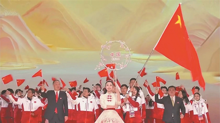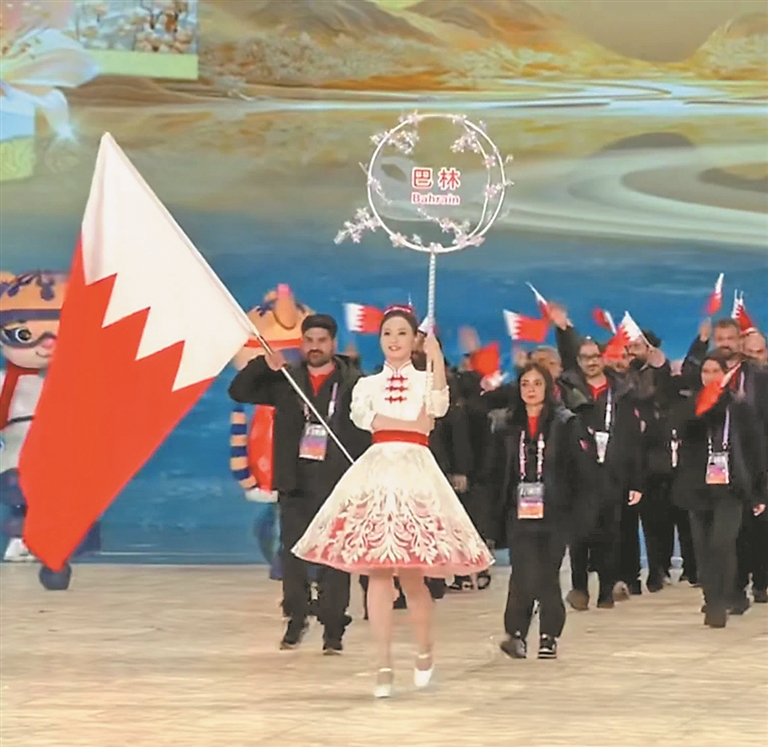 生活报讯 (实习生吕甜甜 周宇航 记者吕晓艳) 7日晚,第九届亚洲冬季运动会开幕式在哈尔滨国际会展体育中心盛大举行,来自亚洲34个国家和地区的运动员齐聚一堂,共赴这场冰雪之约。在开幕式上,有这样一群人,她们身姿优雅、仪态万方,手持引导牌,引领着各国代表团有序入场,成为开幕式上一道亮丽的风景线,她们就是来自我省多所高校的亚冬会开幕式引导员。
