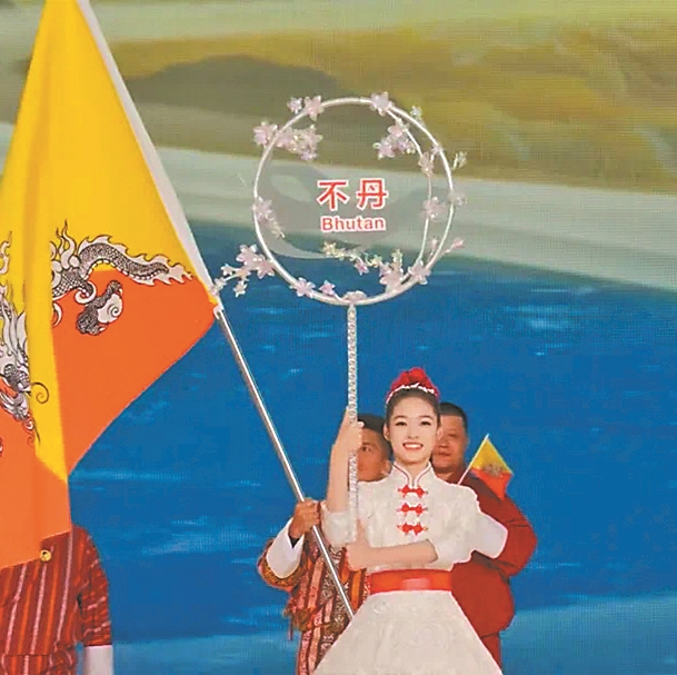 开幕式的引导员中,有一位东北林业大学女孩,用她自信、阳光的微笑将东林青年的热情与蓬勃展现到世界面前,她就是来自东北林业大学文法学院的2024级本科生蔡梓琪,担任第三个出场的不丹代表团引导员,展现了东林学子的自信与风采。