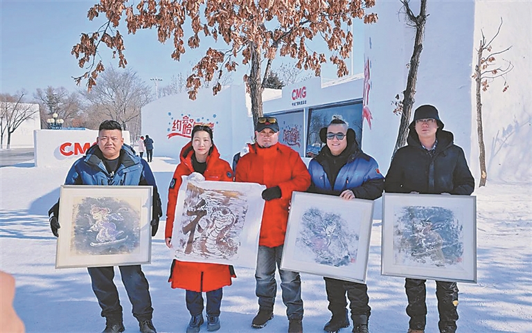 活动现场,身着民族服饰的工作人员现场手工制作了圆滚滚的元宵,让游客们感受到浓浓的节日温情。花手绢在指尖旋转,秧歌扇在空中挥舞……在《奥运冠军之城》雪雕区域,身穿红色花棉袄、腰系红绸的秧歌队员们手执彩扇和手绢,同游客们围成一圈,一起跳着欢快的秧歌步。冰版画制作现场也吸引了众多游客的目光,艺术家们以冰为纸、以刀为笔,通过精心创作,展现出美轮美奂的画面。冰版画艺术家盛琰老师现场作画,手法娴熟、动作流畅,不一会儿,一幅精美的蛇年主题冰版画就呈现在游客们眼前。大家围在艺术家身边,好奇地观看他的创作过程,不时发出阵阵惊叹。