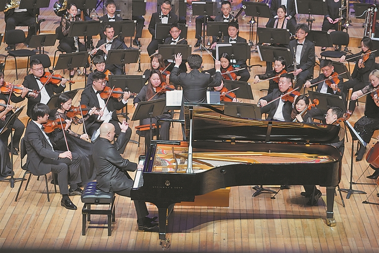 随后,著名钢琴家孔祥东登场,在李一富有激情的指挥下,名家与乐团的配合默契,为哈尔滨观众带来了两首经典作品。其中,《华沙协奏曲》是作曲家理查德·阿丁赛尔为电影《危险的月光》而创作,讲述了飞行员与恋人的坎坷爱情故事,这部作品在中国北方城市尚属首次演出。