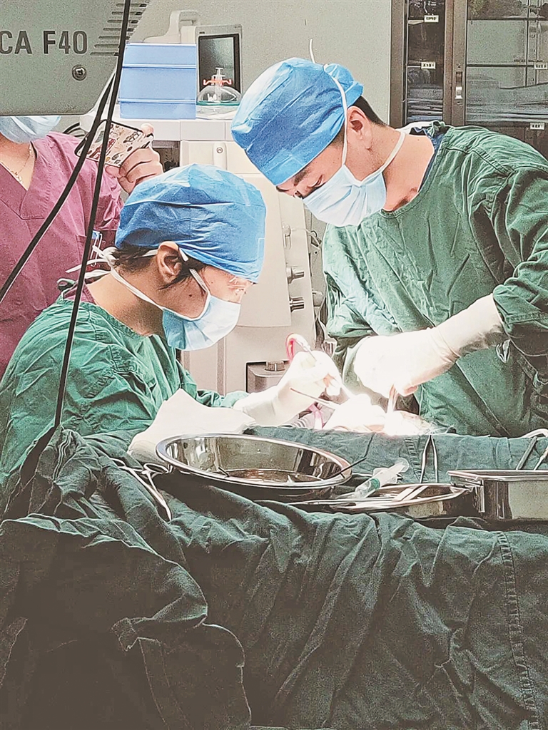 医生决定采取新引入的耳内镜持续灌流模式新技术,联合显微镜辅助进行手术。为了彻底清除中耳病灶,周彬主任先使用显微镜从乳突入路处理乳突和鼓窦病变,再用耳内镜从乳突进入越过面神经垂直段充分显露耳蜗底的巨大中耳胆脂瘤,在持续灌流模式下,持续高清的手术视野精准定位,逐步剥离胆脂瘤囊壁,直至彻底清除胆脂瘤病灶。术后,白雪没有面瘫、眩晕症状,手术效果比预计的更加成功。