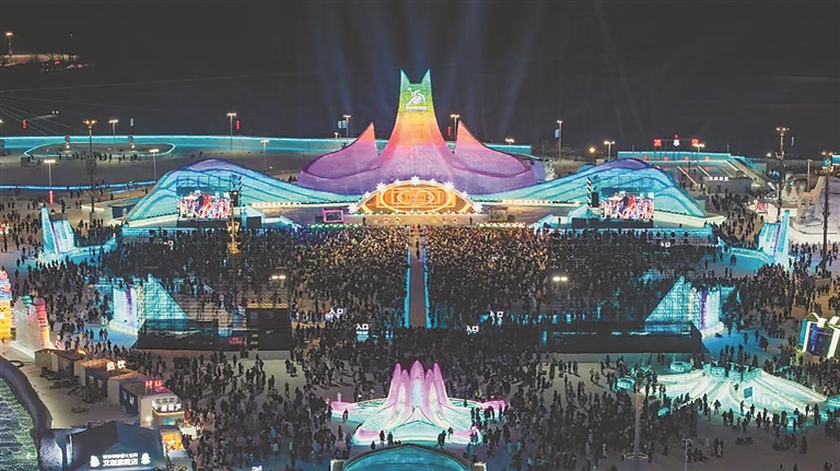 据悉,第二十六届哈尔滨冰雪大世界在100万平方米的园区,用30万立方米的冰和雪,为国内外游客打造了一座美轮美奂、亮点纷呈、欢乐无限的冰雪主题乐园。自2024年12月21日开园以来,历时68天累计接待游客356万人次,其中,2025年2月1日(正月初四)单日接待游客数量突破10万人次,创历届单日入园游客新纪录。