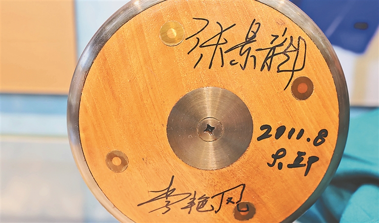 “这个木质铁饼已经绝版了呢!”张景龙拿着那珍贵的铁饼,眼里满是珍视,“现在的铁饼已经不是这样的材料了。这上面还有李艳凤和我的亲笔签名,时间过得真快啊,都过去十几年了。”