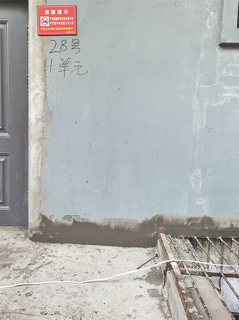 28日下午,记者再次来到德胜街28号,现场已有施工人员正在作业,对悬空的苯板进行补空作业。据德胜社区邹主任介绍,项目施工方已于27日进场复工,现正在对苯板悬空进行填补等收尾工作,单元门可视对讲等其他工作目前尚未开展。