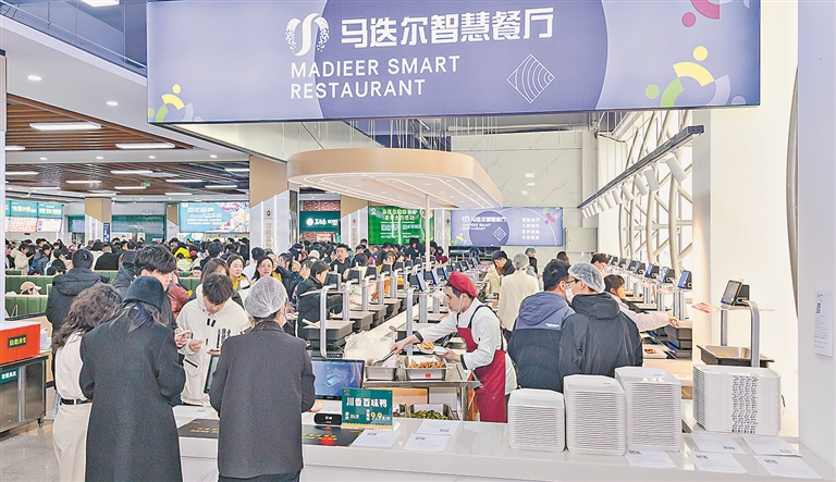 3月31日正午时分,哈尔滨医科大学新建的智慧餐厅里,餐盘与智能秤的轻微碰撞声不时响起。医学生们在琳琅满目的菜品前驻足,无须掏卡,只需“刷个脸”就能点餐,营养成分数值在屏幕上一目了然,取餐后径直走向餐桌——系统将自动从预存账户中完成扣款。这个由百年老字号马迭尔打造的校园智慧餐厅,正用数字技术重新定义高校餐饮的“温度”与“效率”。据了解,这也是马迭尔集团在黑龙江开设的第四家校园智慧餐厅。在这里,每一道菜都经过营养师的精心配比,每一个环节都经过智能系统的精确计算。当百年锅气撞上数字算法,当中华老字号邂逅蛋白质计算器,这场舌尖上的“数智交响曲”如何留住烟火气的温度?