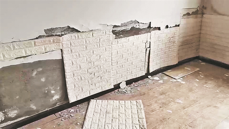 生活报讯 (帮办记者李威兵 文/摄) 日前,冰城市民王女士向生活报帮办记者反映,自己在松北区学苑小区的房子出现了返潮漏水、墙皮脱落的情况。
