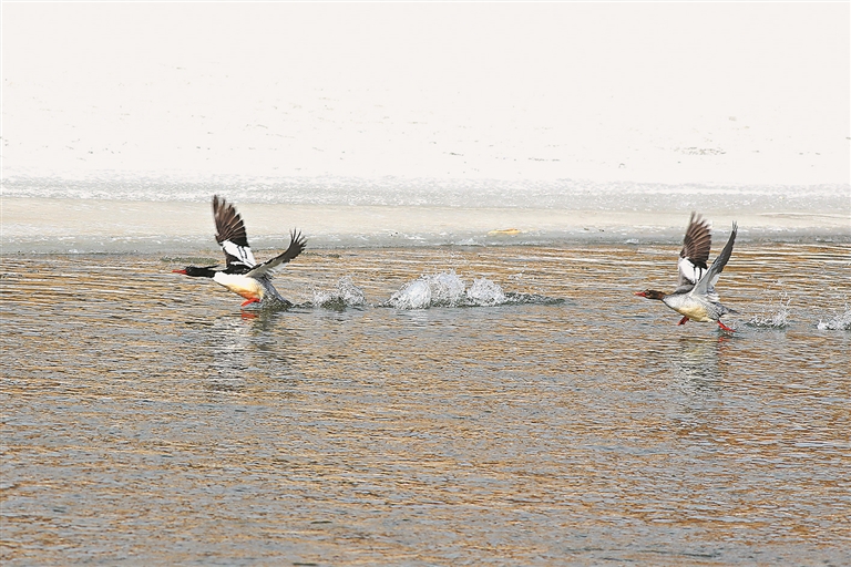 “今年较去年晚来了3天,好像还不是常来的那个族群,往年最大的族群有11只,这个族群的体态特征和它们对不上,说明咱们这儿的生态‘招待所’又来了新成员。”作为一名追踪拍摄中华秋沙鸭近十年的“鸭粉”,孙强烈早已摸清了它们的“行程表”,从3月上旬开始,每天他都会早早来到海浪河畔,静候它们从南方跨越数千公里,精准回归。