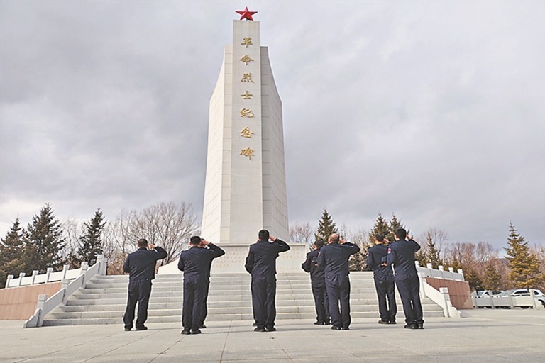 4月3日,伊春边境管理支队组织所属各单位开展“清明祭英烈·薪火永传承”祭扫缅怀英烈活动。在伊春市烈士陵园,支队机关全体民警庄严肃立在革命烈士纪念碑前,脱帽默哀。