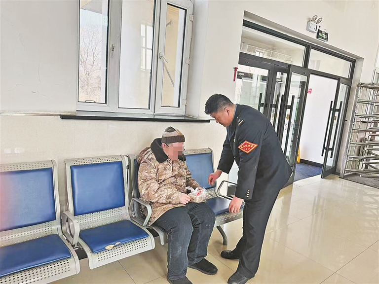 王云峰为他端来热水,安抚其情绪。在客运值班员高金健和值班民警姜海波的协助下,工作人员尝试与男子进一步沟通。但由于男子思维混乱、表达不清,给信息核实带来困难。工作人员通过其手机通讯录成功联系到远在沈阳的父亲。