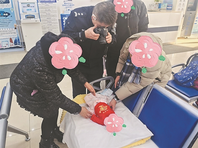 经了解,两位宝宝的父母都长期在国外工作,宝宝出生后近期都要跟父母返回国外生活。受理中,出入境接待大厅安排专人耐心指导宝宝家长准备申请材料,但孩子人像采集成为了难题。拍照者需端庄正坐,露出五官,正视相机,然而对于不到一个月的婴儿来说,要达到这些标准属实不易。婴儿无法坐立,民警就用白色布单做背景板,将宝宝平放在等候座椅上。由于年龄太小,宝宝哭闹、瞌睡等情况频出,拍照过程总是扭动,“拒绝”看镜头,民警多次抓拍仍无法采集到一张合格的照片。孩子家长面露难色,便打起了退堂鼓。为了不让申请人跑第二趟,民警贴心地帮助孩子家长共同安抚宝宝情绪,拿出小玩具吸引孩子注意力,经过反复抓拍,一遍遍尝试,终于为两位宝宝采集到人生第一张“最萌证件照”,并顺利完成了护照受理全部流程。
