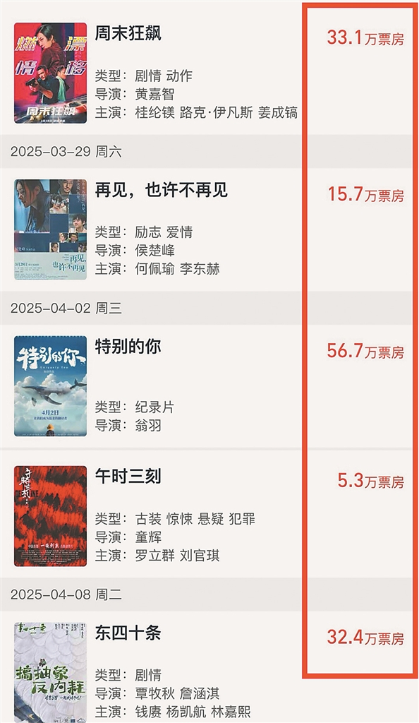 在不少观众看来,每个月的电影片单中,大部分影片存在的意义好像只是为了“充数”,毕竟从片名到演员阵容,让人丝毫提不起“想看”的兴趣。就连影院的排片也是少得可怜,如果遇到厅多的影院,或许能给它们安排一两场。反之,它们连“一日游”的资格都没有。