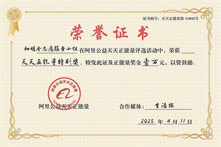 阿里天天正能量的颁奖词中这样写道:“七年前,当孤残老人无力病倒,是他们伸出温暖的双手,四处奔走,日夜陪护,悄悄承担开销……从那时起,他们就许下了一个没有契约的承诺:做这位老人的眼睛,做她无依无靠时的拐杖。七年春秋,两千多个日夜,他们用最朴实的行动,诠释了人间至善。寒冬里铺设热床,让她的被窝不再冰冷;风雪中送菜送药,成为她的‘专属跑腿’;生日之际,用满屋的笑声填补没有亲人的遗憾。这不是血缘的羁绊,却比亲情更浓;没有法律的约束,却比契约更重。阿里公益天天正能量联合生活报,为初明香志愿服务小组颁发正能量特别奖及10000元奖金。致敬这份不离不弃的守护,你们让‘老吾老以及人之老’的古训,在抚远的街巷里熠熠生辉。”