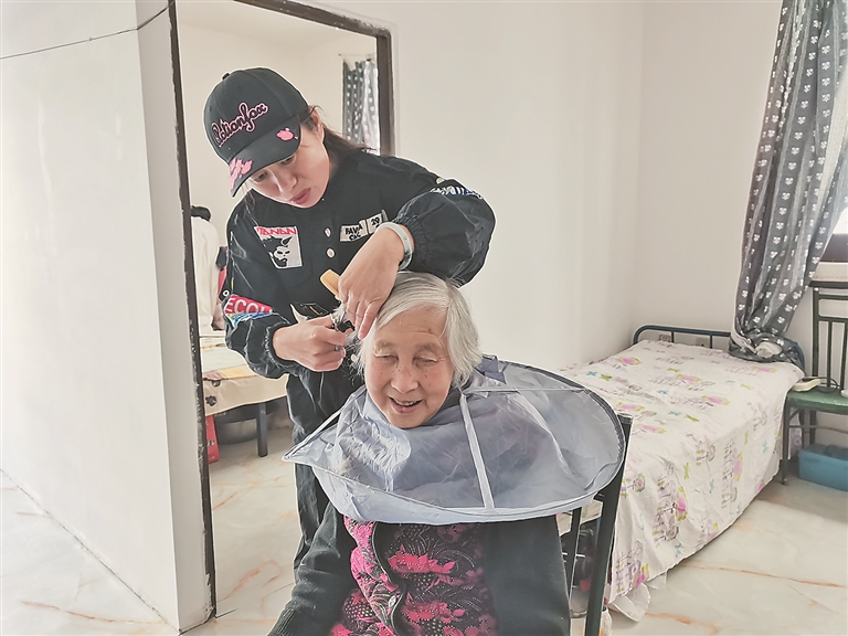 李振艳为初大娘理发