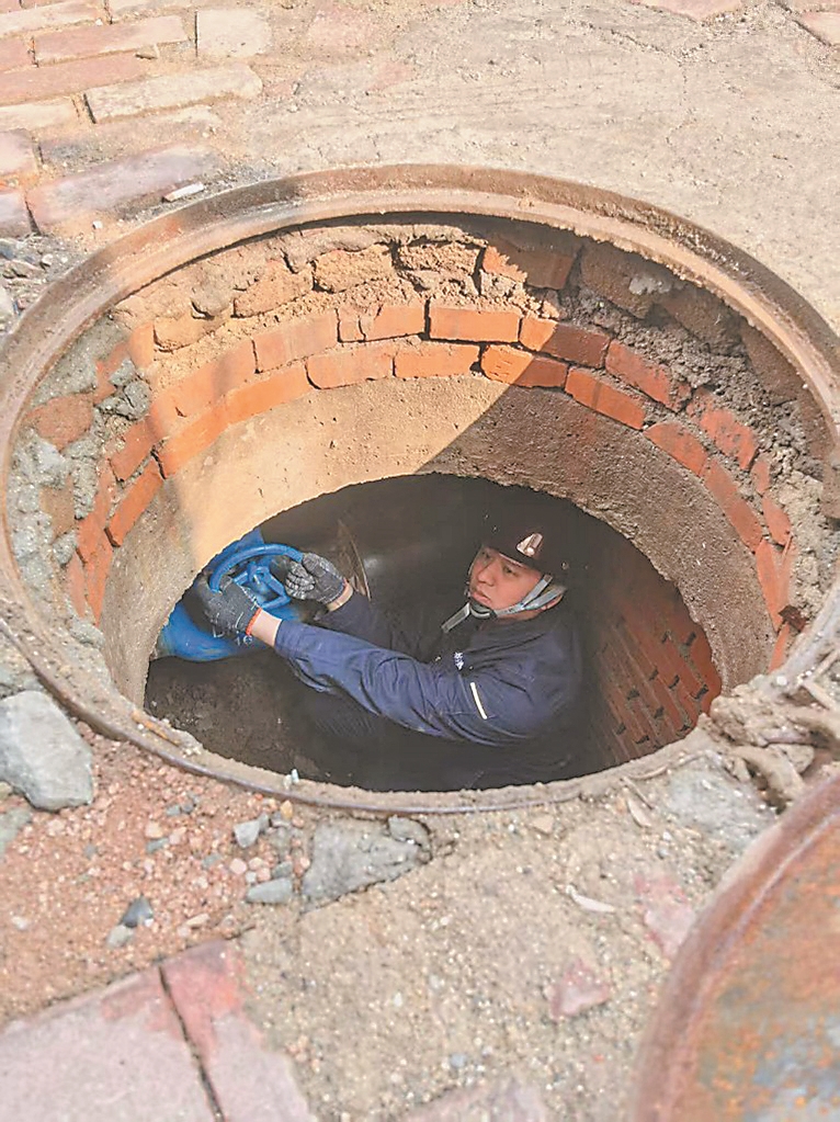 “漏水位置在社区办公楼供热主管道,必须立刻阻断水源!”维修站长根据报修信息精准判断险情。抢修人员抵达时,社区附近管井已出现积水。维修需关闭深埋地下2米的主控阀门。狭窄的井室内蒸汽弥漫,能见度不足半米。维修人员田学超率先下井,在直径仅80厘米的密闭空间里侧身作业。凭借多年抢修经验,他迅速关闭总阀门,成功切断漏水管道水源。