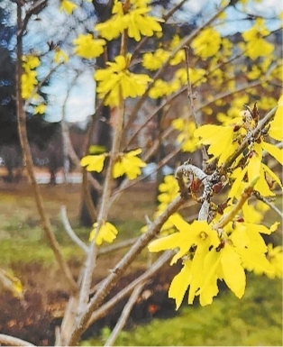 率先登场的东北连翘,被市民亲切地称为“迎春花” ,已然成为冰城春天的使者。在哈市香坊区三合路的一些居民庭院内,金黄的连翘花挂满枝头,一朵朵小巧玲珑的花儿簇拥在一起,如同串串金色的风铃。在香远溢清广场上,大片的连翘肆意绽放,明艳动人,吸引众多市民驻足观赏、拍照留念。欧洲新城小区里,几株连翘探出墙头,俏皮地向路人展示着春天的气息。龙军家园小区内的连翘花开得正盛。75岁的李奶奶笑着说,她最近每天都会和老邻居们来这里晒太阳、赏花,“看着这些花,心情都变好了。”