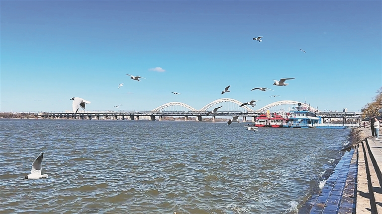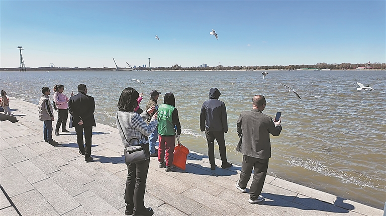 生活报讯 (记者李楠 牛婷婷 文/摄) 春江水暖,江鸥先知。随着春暖花开,成群结队的红嘴鸥如约而至,在松花江面上翩跹起舞,为哈尔滨增添了一抹灵动的诗意。这些“水上精灵”的归来,不仅是生态和谐的见证,更成了哈尔滨人心中独特的春日浪漫。15日,记者来到松花江边,感受春日的温暖与自然的和谐。