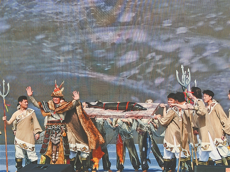 启动仪式上,演员们用舞蹈艺术生动再现了“祈江福”“开江赋”“探水文”“取江水”“捕头鱼”五个民俗场景,不仅展示、传承、发扬了松花江开江习俗和文化传统,还表达了哈尔滨人对美好生活的向往和追求,引发围观人群纷纷拿出手机“定格精彩”。