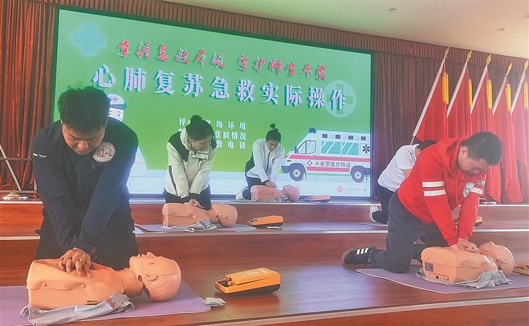 作为保国第四小学的校医,于秀英老师说:“校医的责任非常重大,在师生出现心脏骤停的关键时刻,一定要用掌握的急救知识,不仅动作要到位,更要频率精准,把握好救人的黄金时间。”