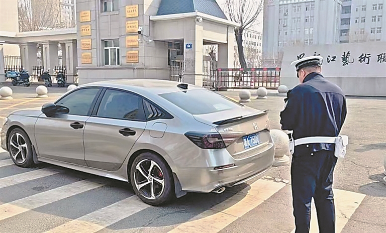 10日12时许,交警香坊大队民警巡逻至黑龙江艺术职业学院门前时,发现黑A75D8*号车辆违停在人行横道上,给师生出行带来不便。交警立即联系车主,并对其不文明行为进行批评教育,给予100元罚款的处罚。